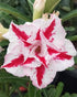 Trumpet shaped triple petal White red Adenium flowering plant (desert rose). Package contains 5 inch black plastic pot, as ready to place. Please keep in mind we are not charging for the size, we are charging for the rare colors we have. We are giving assurance for the color only, not the size.