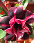 Trumpet shaped Adenium flowering plant (desert rose). Package contains 5 inch black plastic pot, as ready to place. Please keep in mind we are not charging for the size, we are charging for the rare colors we have. We are giving assurance for the color only not the size.