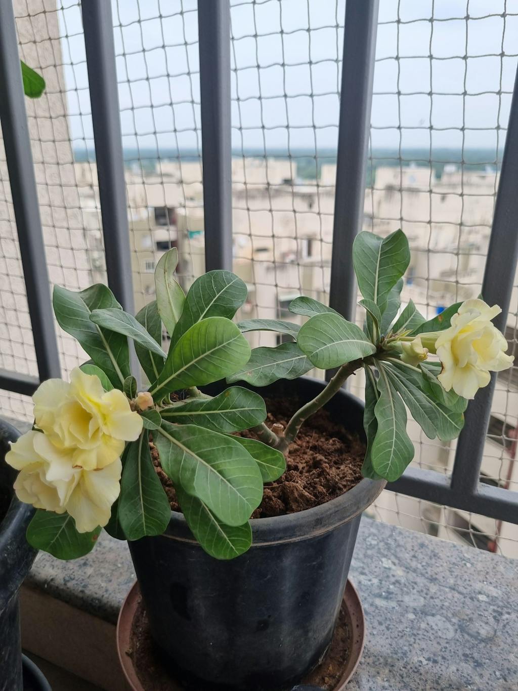 Trumpet shaped double petal yellow Adenium flowering plant (desert rose). Package contains 5 inch black plastic pot, as ready to place. Please keep in mind we are not charging for the size, we are charging for the rare colors we have. We are giving assurance for the color only, not the size.